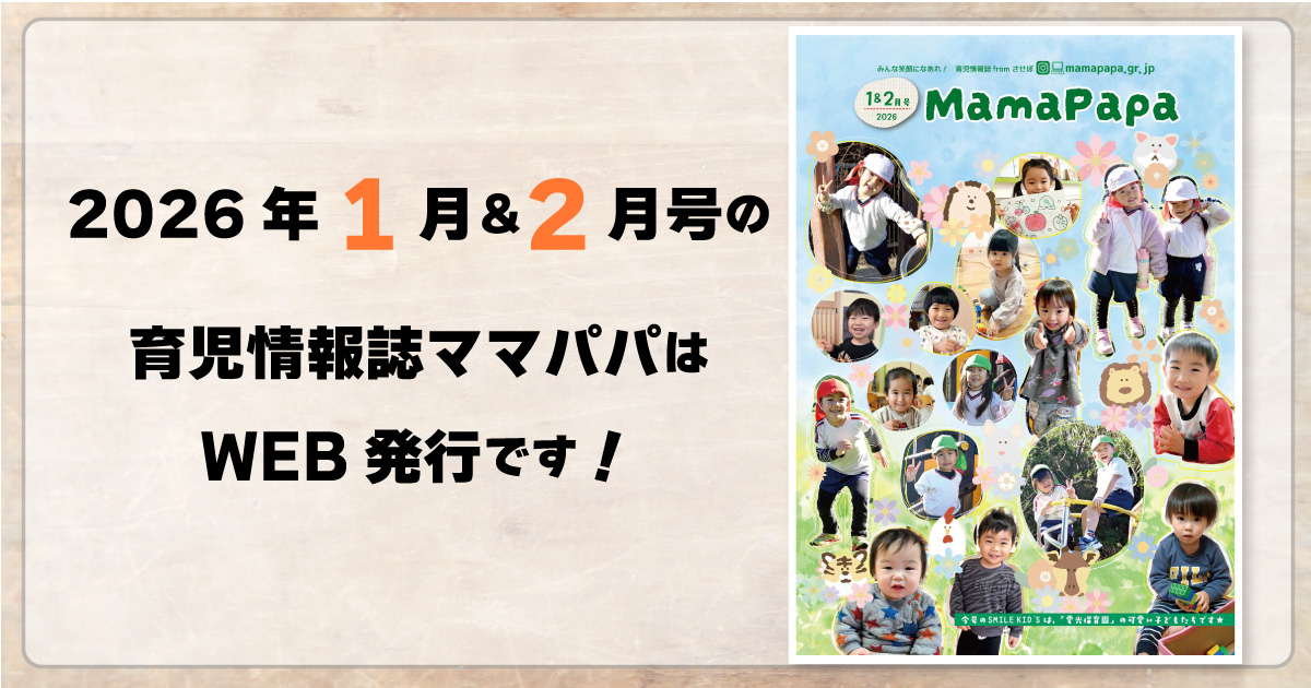 11月の子育て支援月間にあわせて毎年開催されている佐世保市保育会のイベントです。お天気の関係で内容が変更になりましたが、無事開催されました。足元の悪い中遊びに来てくれた親子の皆さんありがとうございました♪写真も追加予定です。お楽しみに♪ ママパパ11月&12月号の「表紙撮影」も無事終了!ご協力ありがとうございました。 佐世保市保育会のHPはこちら タイムスケジュール 10:00~10:30/開会式 14:45~/閉会式