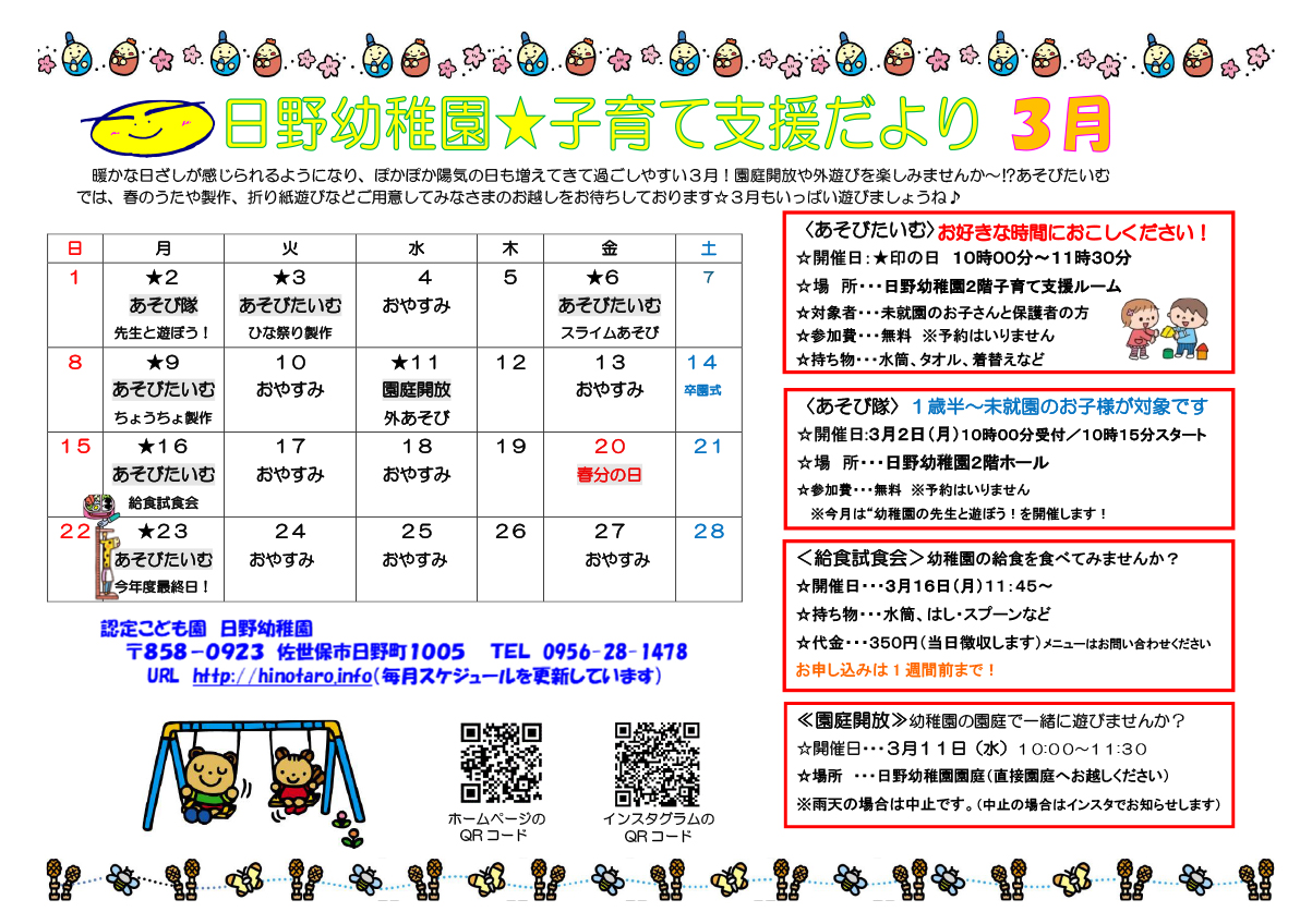 佐世保市幼児教育センター発行「きらきらだより」2026年3月号