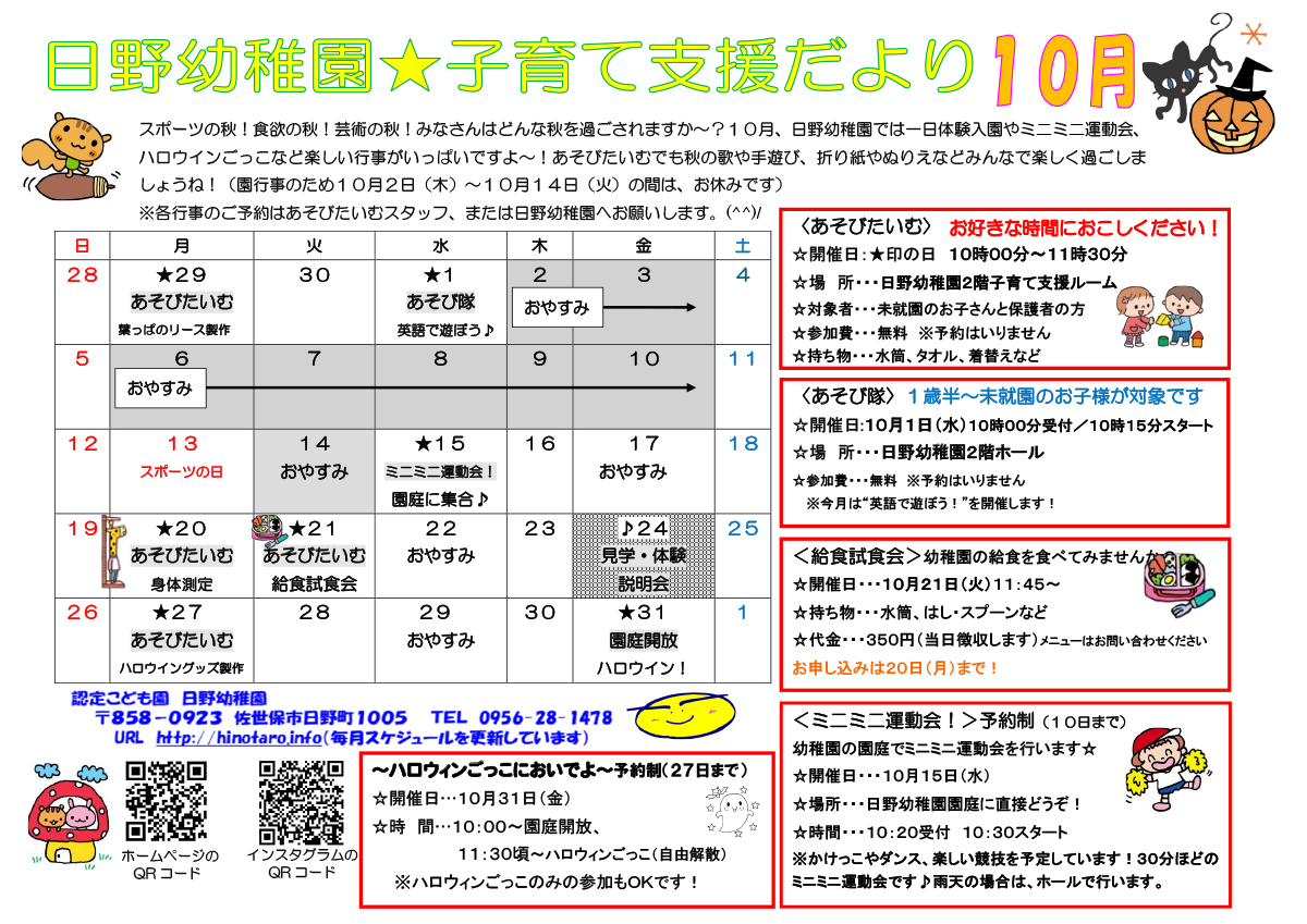 佐世保市光月町にある認定こども園 アソカ幼稚園では、未就園児の親子対象に、季節ごとの楽しいお遊びや、親子で楽しめるふれあい遊びに加えて体育教室、英語あそびなど、専門の先生にもおいでいただき、幅広く楽し ...