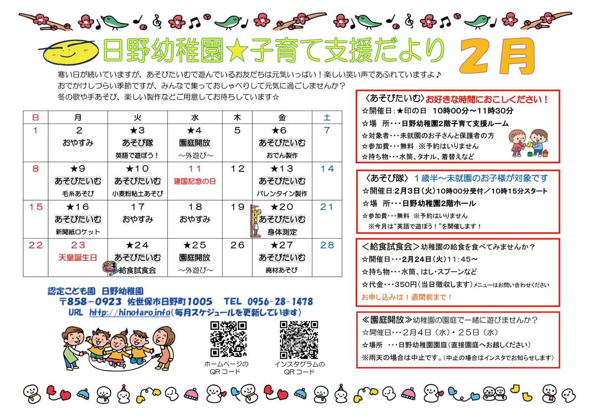 子育て支援センター「2026年2月のイベントカレンダー」