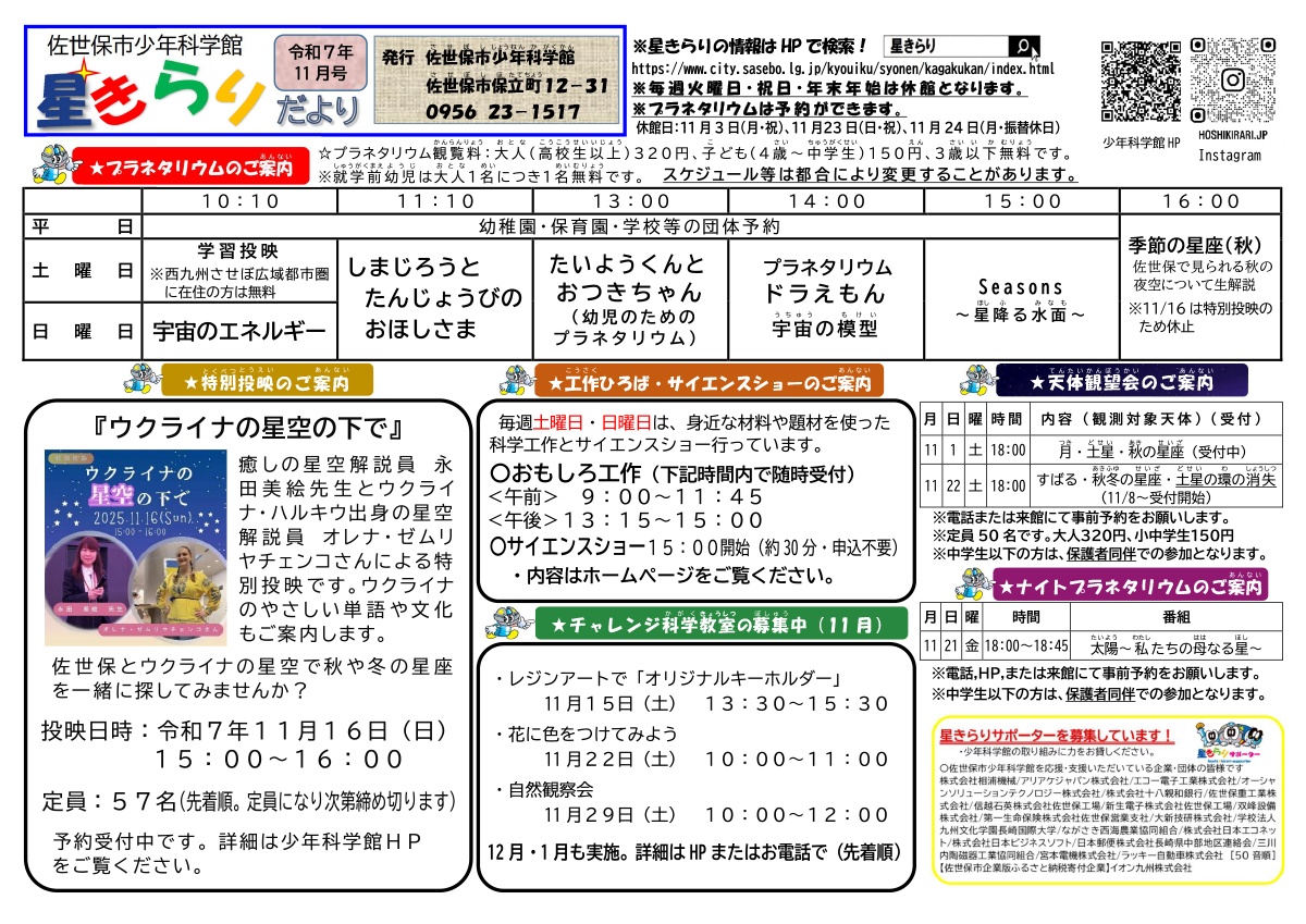 星きらりだより 2025年11月号関連 その他のイベント