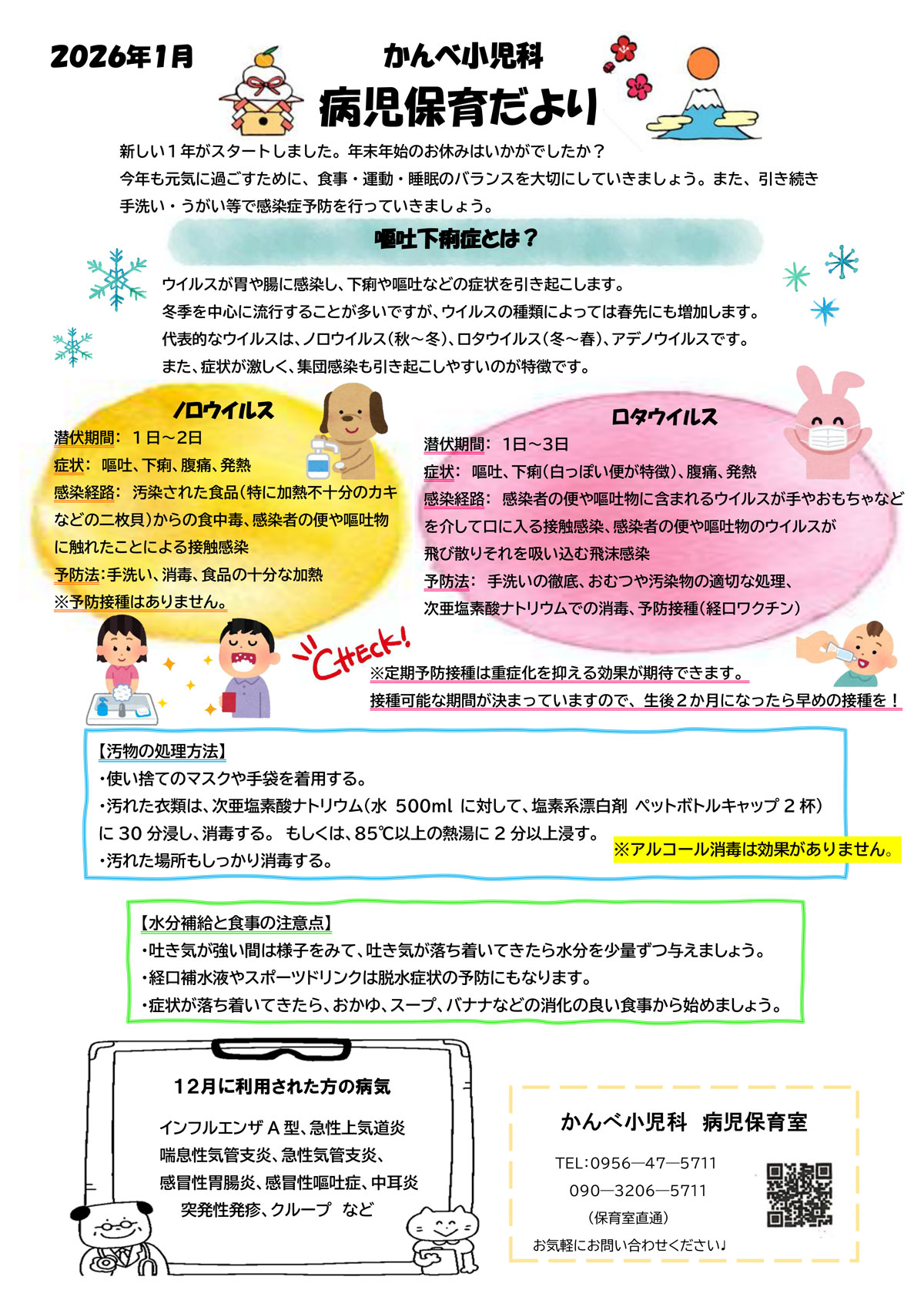 佐世保市内の5つの病児保育室が毎月順番に発行!感染症の流行情報や予防策などをお知らせしてくれますよぉ~♪おたよりは、各病児保育室や保育幼稚園課窓口でもらえます♪