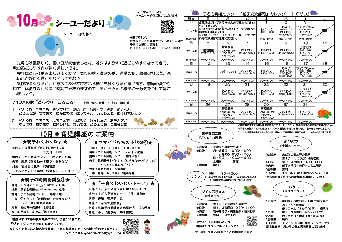 子育て支援センター「2025年10月のイベントカレンダー」