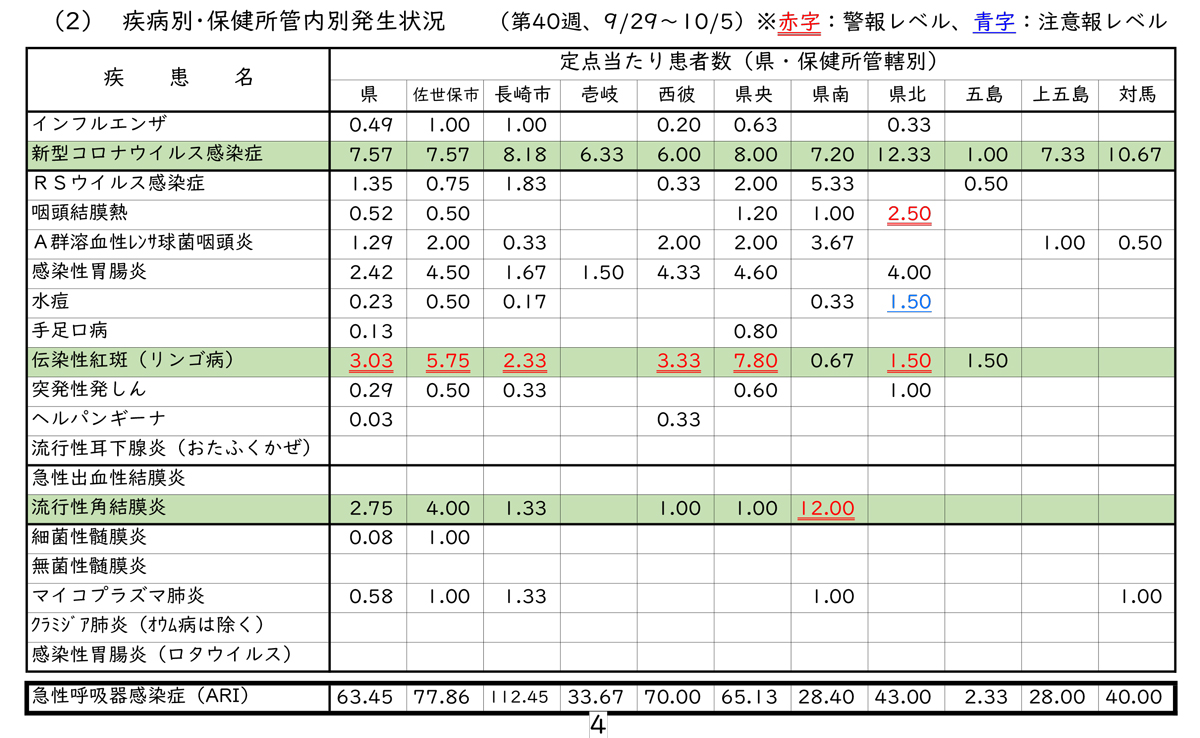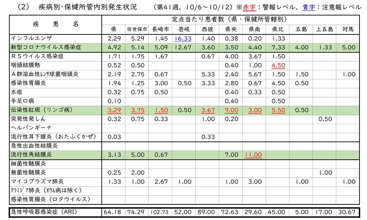 2025年第41週(10月6日~10月12日)の感染症発生動向調査において、佐世保市の新型コロナウイルス感染症の定点当たり報告数は5.14となりました。減少傾向にあるとはいえ、十分な注意が必要です。