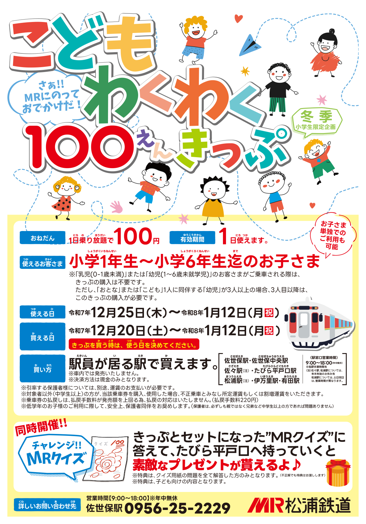 この冬はMRに乗ってみよう‼「こどもわくわく100えんきっぷ」