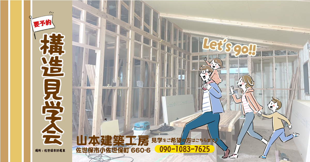 佐世保市針尾東町の新築一軒家。期間限定今しか見れない内側を見学できますよ。構造見学会の予約受付中! 子どもたちがのびのび育ち、家族がわくわくする自然素材の優しい木の家。子育て先輩パパの山本さんが一緒に ...