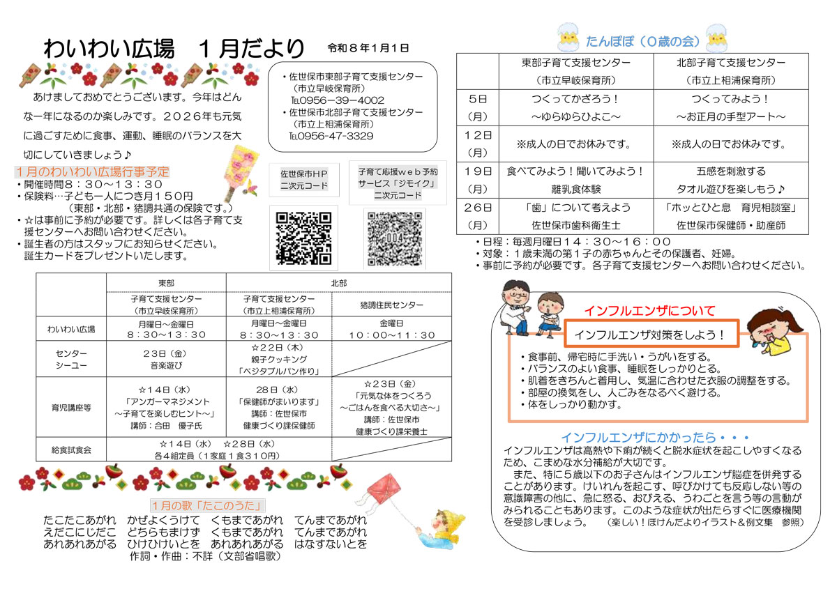 東部子育て支援センター&北部子育て支援センターが毎月発行しているおたよりです。 子育て支援センターで開催されるイベント紹介 園主催のあそび場