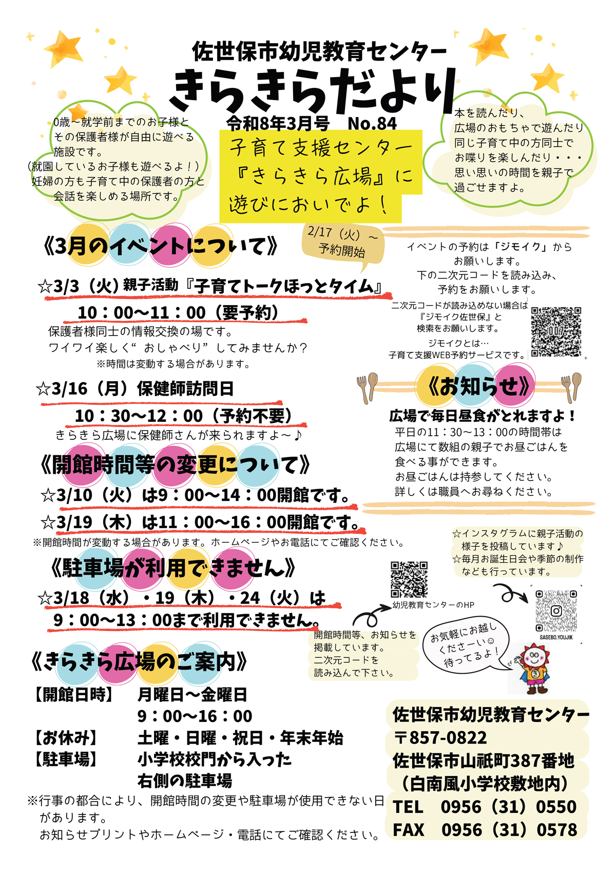 佐世保市幼児教育センター発行「きらきらだより」2026年3月号