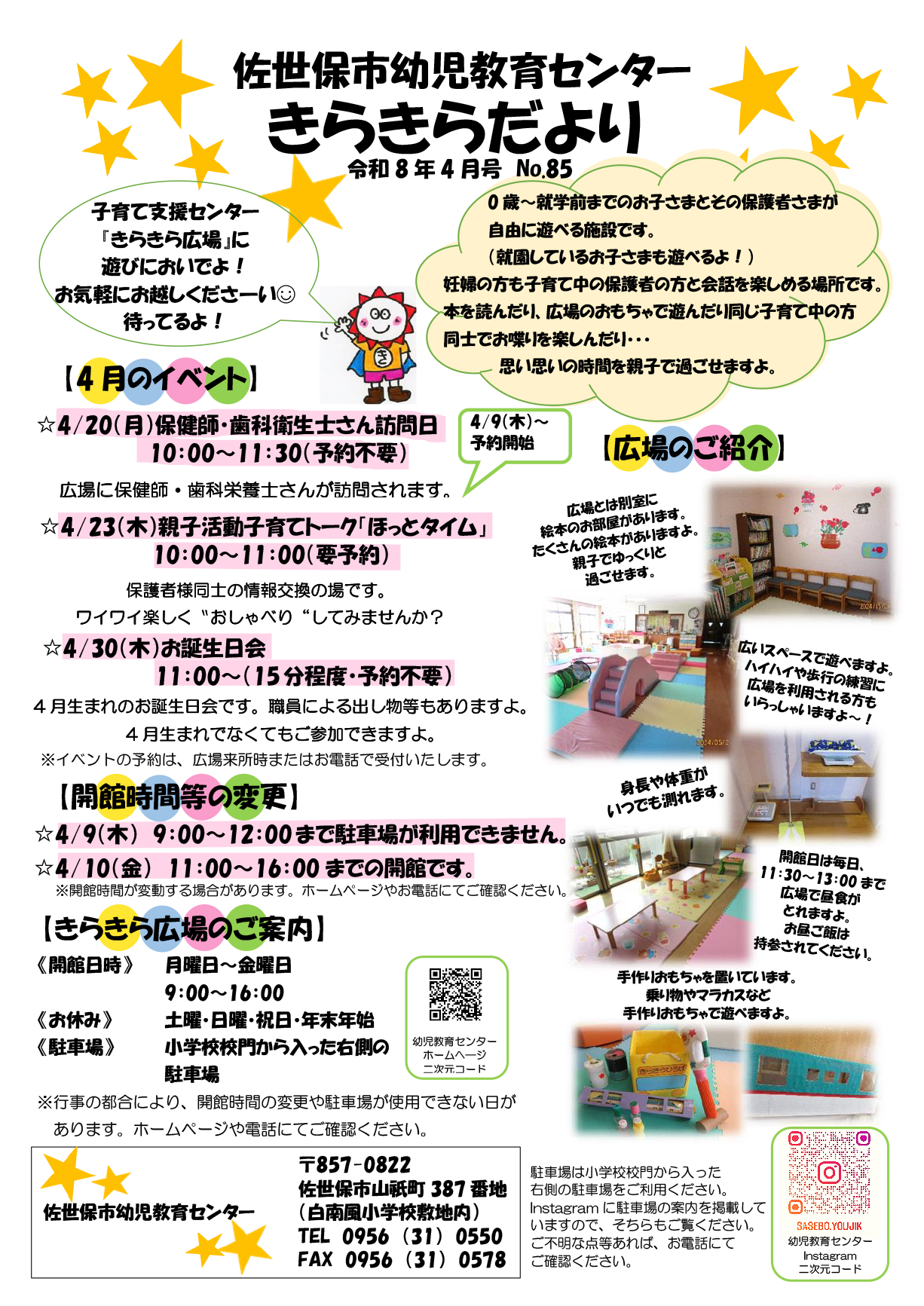 佐世保市幼児教育センター発行「きらきらだより」2026年4月号